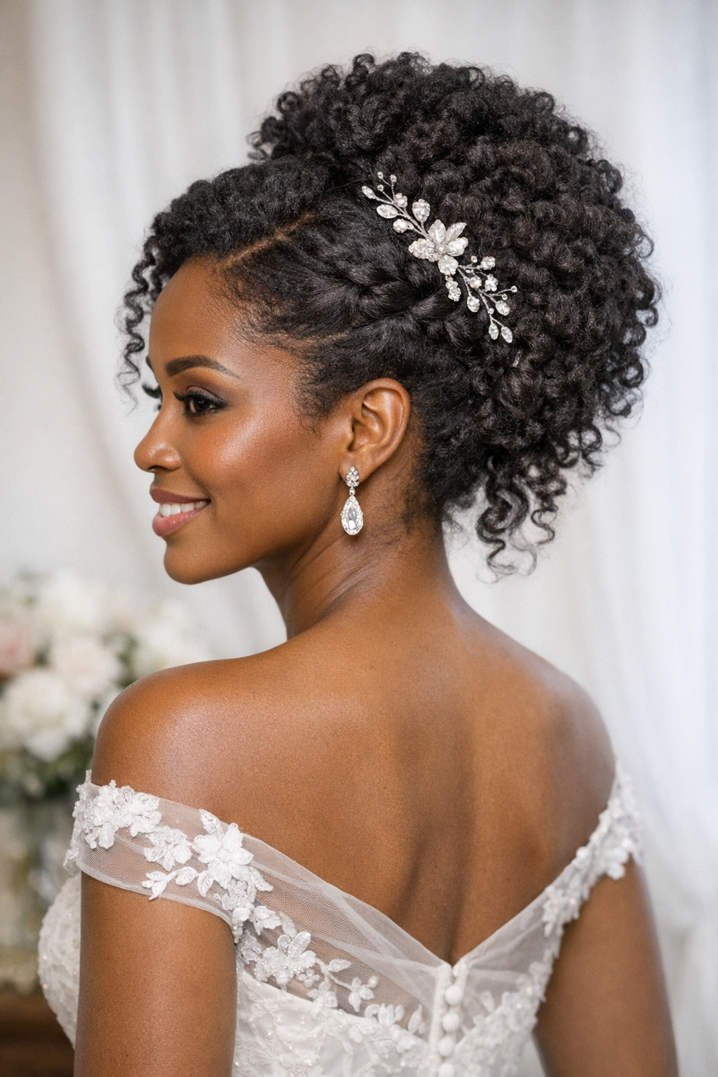 This family is about honoring natural movement while keeping the finish photo-ready and stable. Defined Coils Updo stays ready for veils, jewelry, and bridal portraits without turning into a heavy gallery page.
