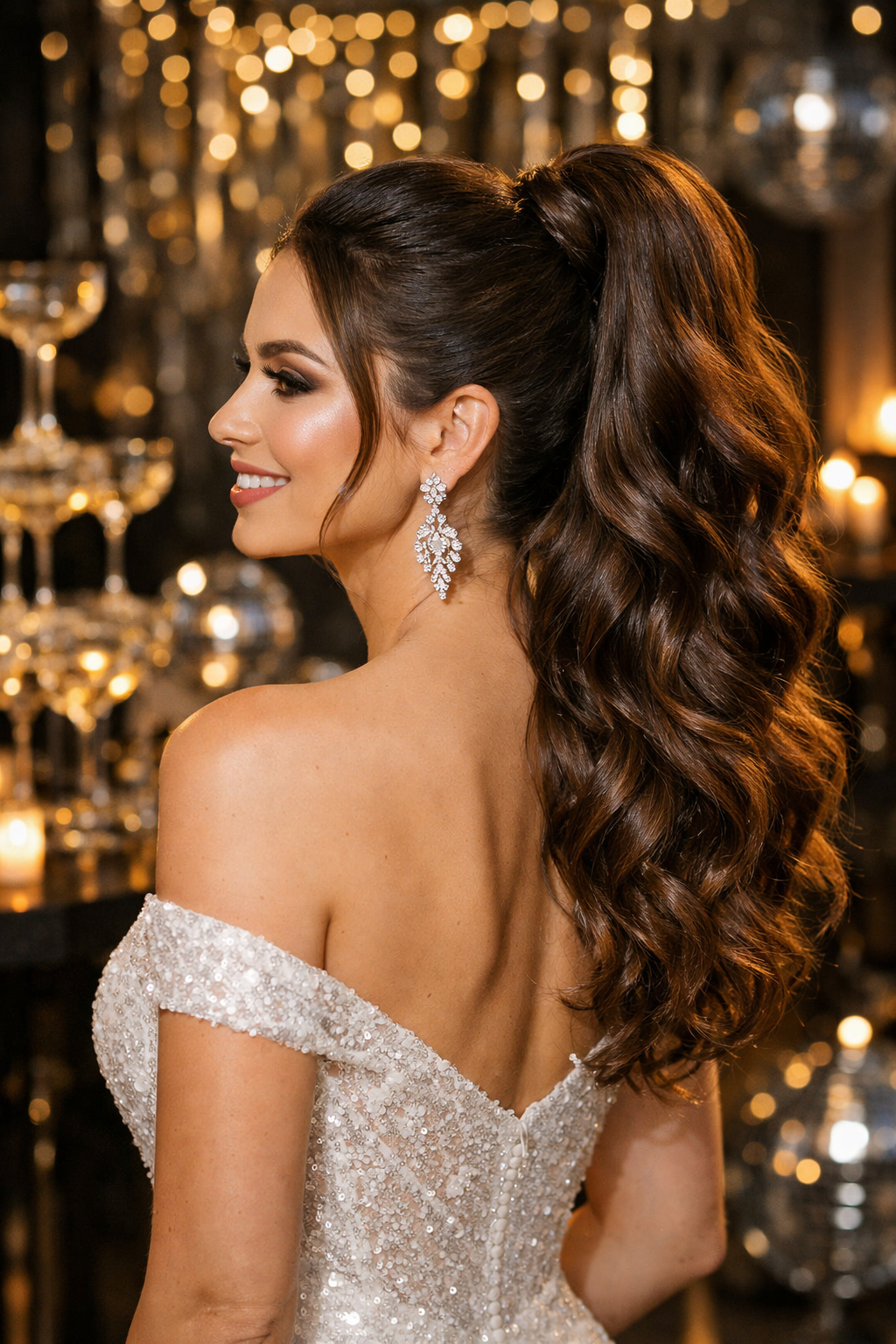 This family fits brides who want movement and clean shape without committing to a full updo. Glam High Ponytail stays ready for veils, jewelry, and bridal portraits without turning into a heavy gallery page.
