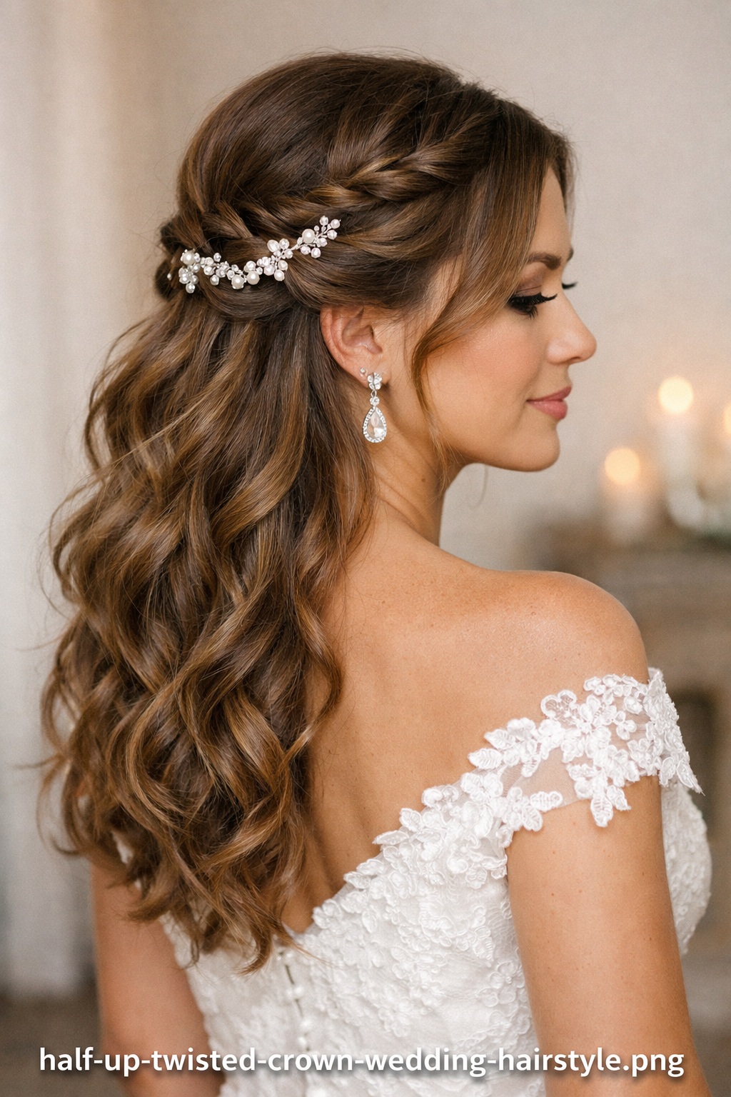 This family bridges open hair and structure, making it useful for veils, combs, and softer crowns. Half Up Bow Detail stays ready for veils, jewelry, and bridal portraits without turning into a heavy gallery page.