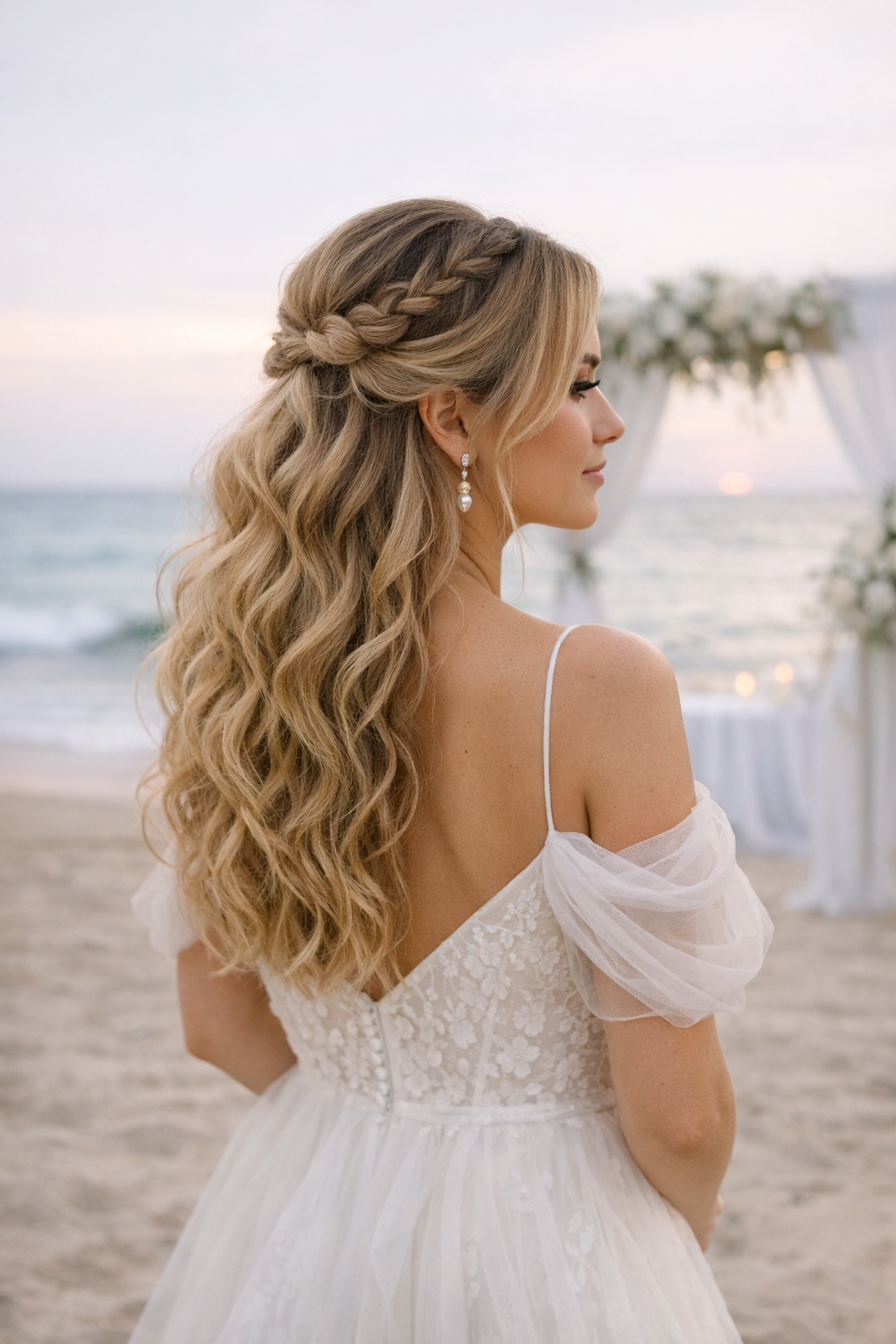 Locs Half-Updo is a loc-focused bridal look that respects structure, adornment, and silhouette control.