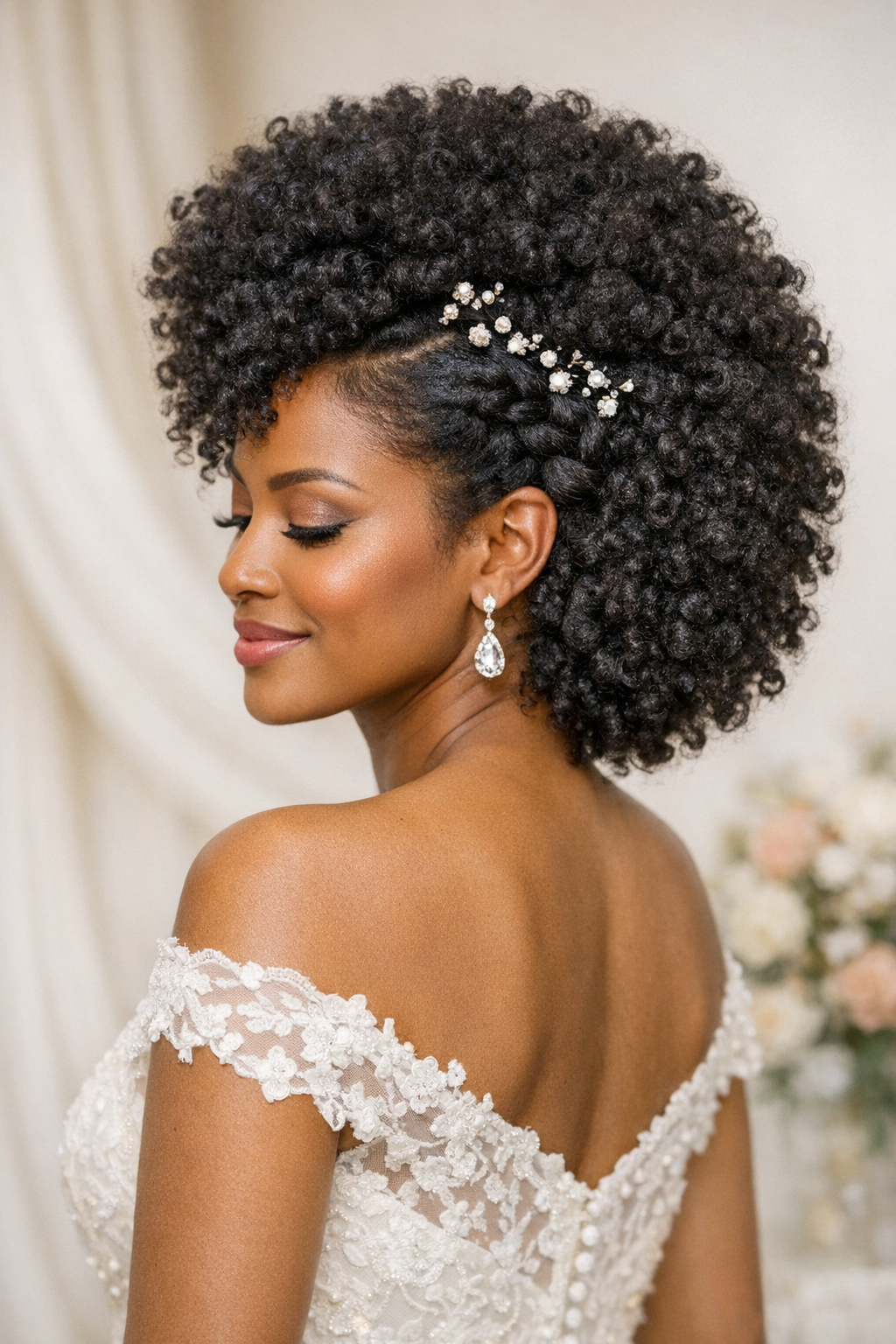 Marley Twists Bun is a bridal look built on protective styling, clean parting, and ornament-ready shape.