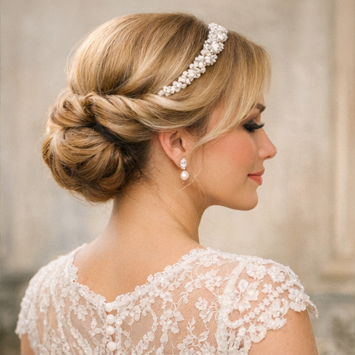 This family is about precise contour, shine control, and making shorter length feel intentionally dressed. Pearl Pin Bob stays ready for veils, jewelry, and bridal portraits without turning into a heavy gallery page.