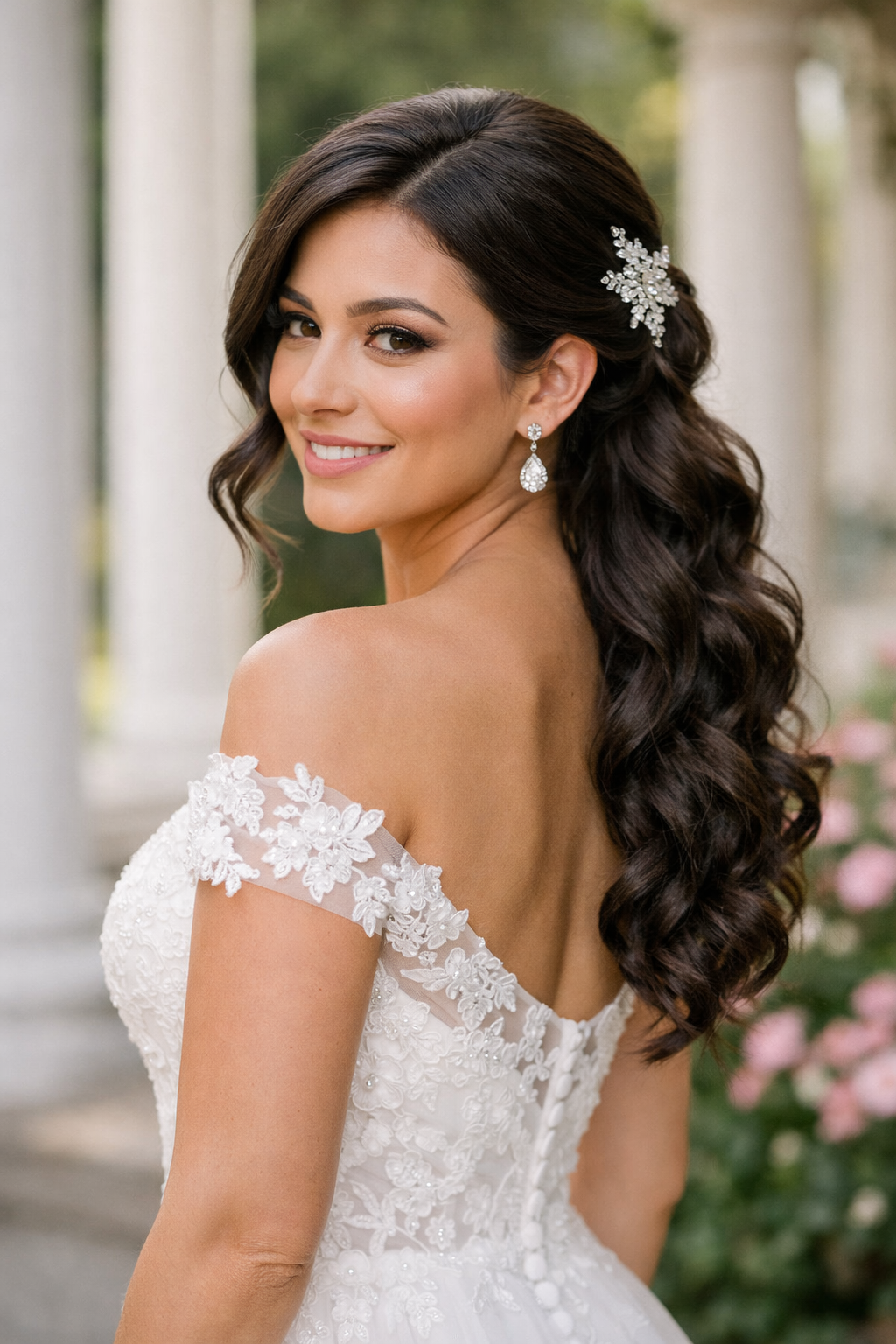 Romantic Ponytail is a sleek or textured bridal line that keeps the profile modern and camera-ready.