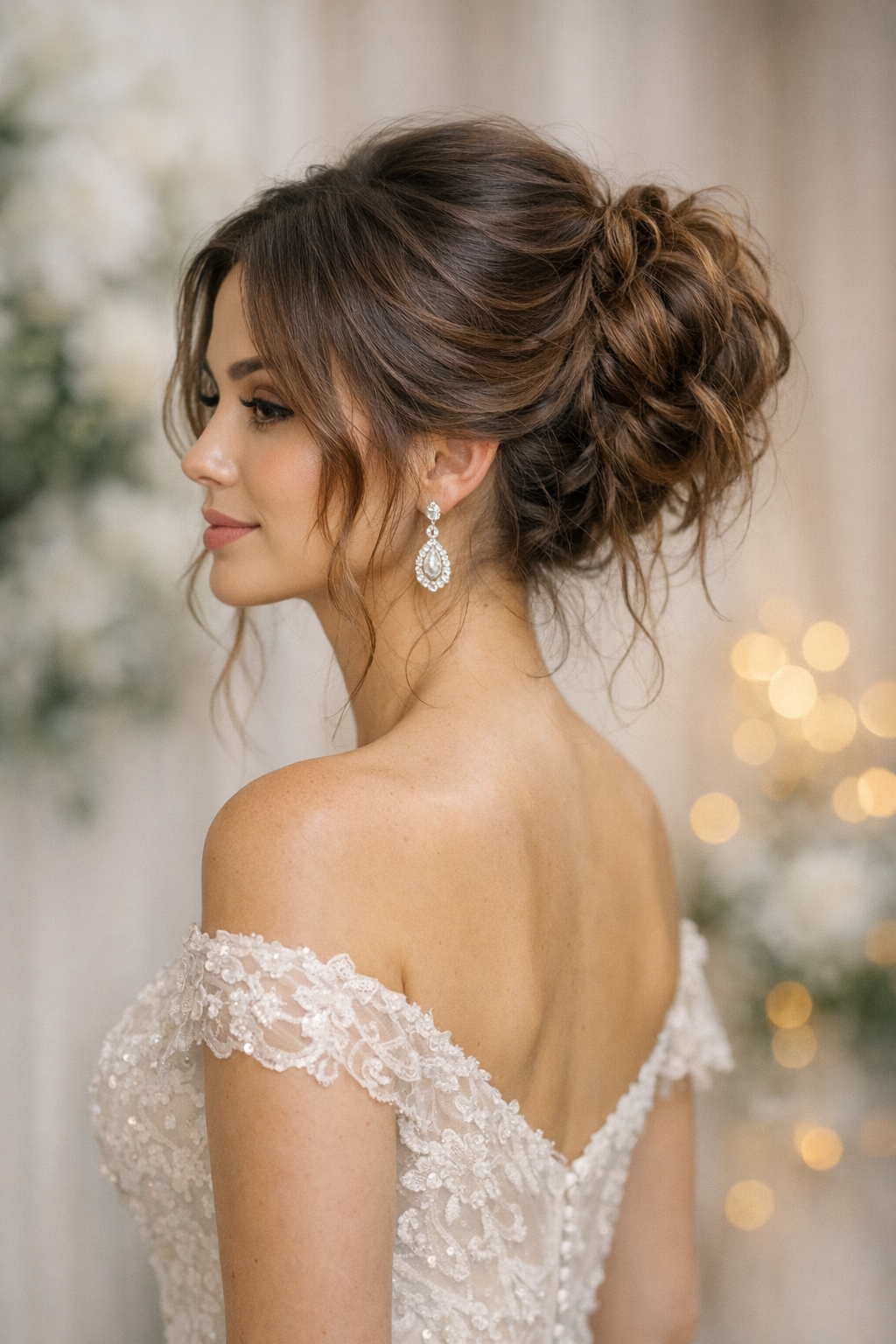 Romantic Updo is a sculpted bridal arrangement with texture, lift, and event-ready movement.