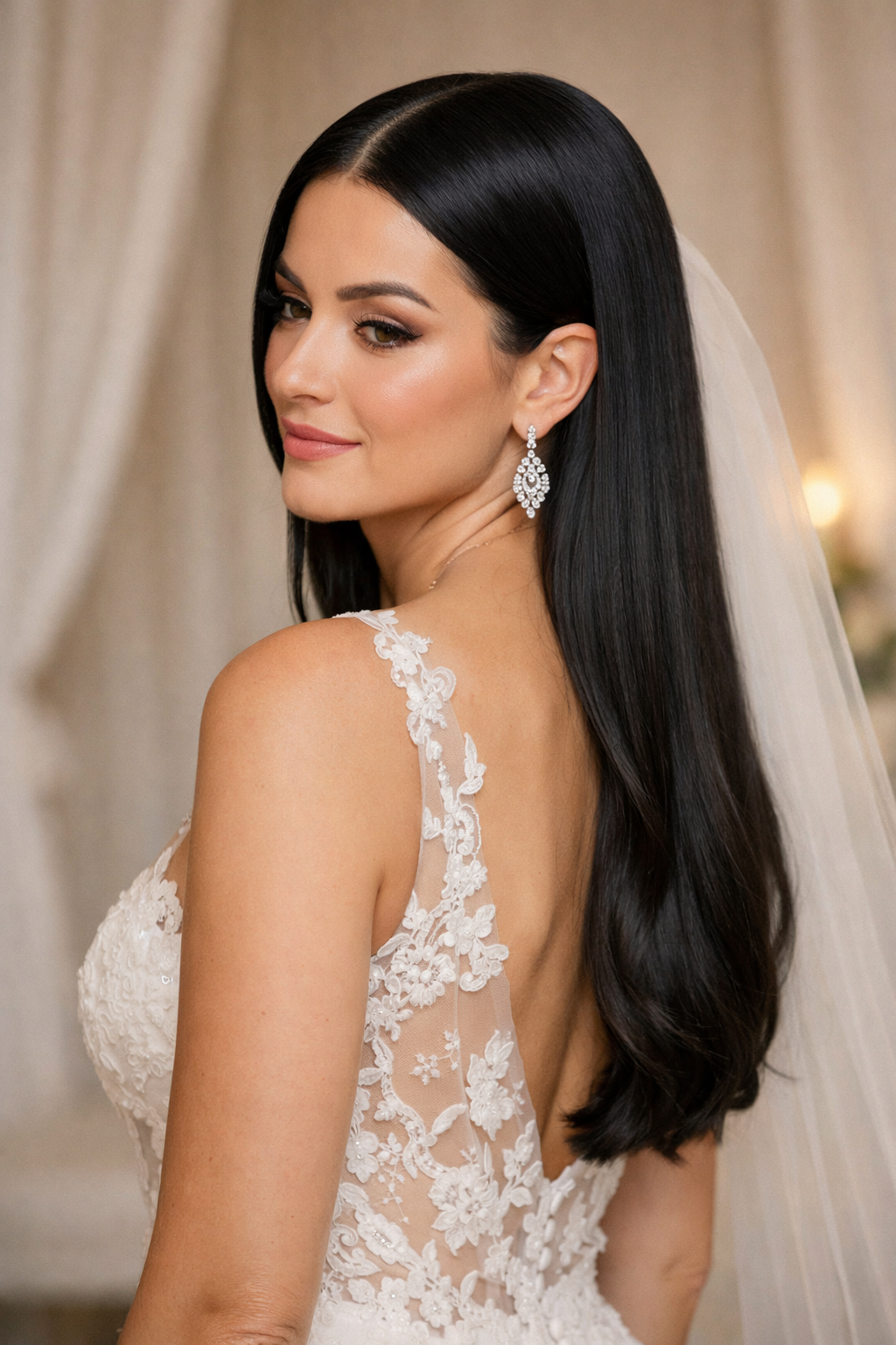 This family is about precise contour, shine control, and making shorter length feel intentionally dressed. Sleek Bridal Bob stays ready for veils, jewelry, and bridal portraits without turning into a heavy gallery page.