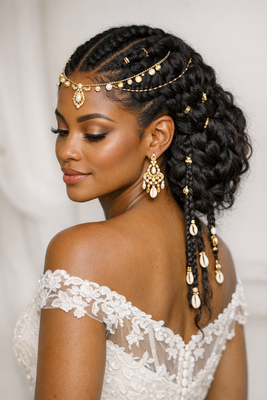 Twist Crown is a bridal look built on protective styling, clean parting, and ornament-ready shape.