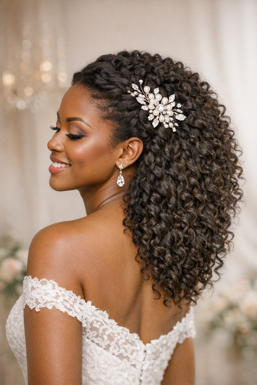 Twisted Locs Bun is a loc-focused bridal look that respects structure, adornment, and silhouette control.