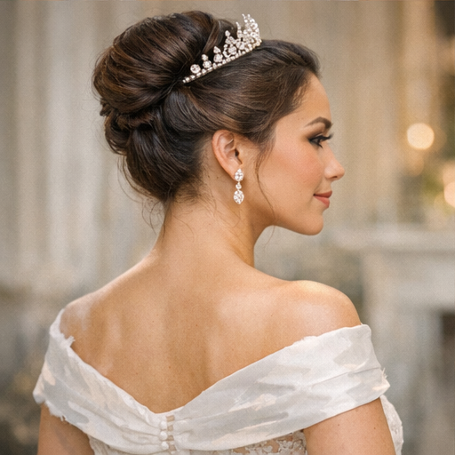 This family is built for long timelines, clean lines, and controlled volume. Veil Ready High Bun stays ready for veils, jewelry, and bridal portraits without turning into a heavy gallery page.